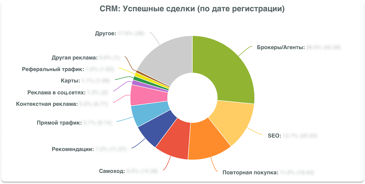 - вклад рекламных каналов в сделку