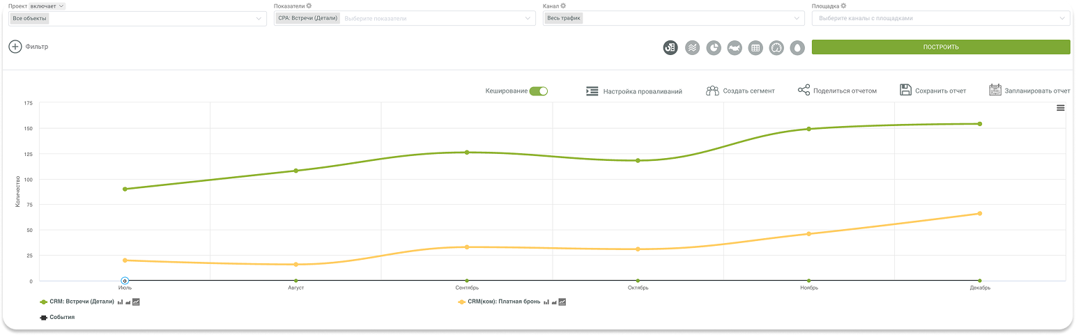 После внедрения этих отчетов коллеги из отдела маркетинга начали анализировать ситуацию и заметили одну тенденцию: целевые обращения по всем квартирам поступали равномерно из месяца в месяц. Однако начиная с июля брони и продажи студий резко упали. Не последнюю роль в этом сыграла отмена ипотечной программы с господдержкой и ужесточение условий выдачи ипотеки.