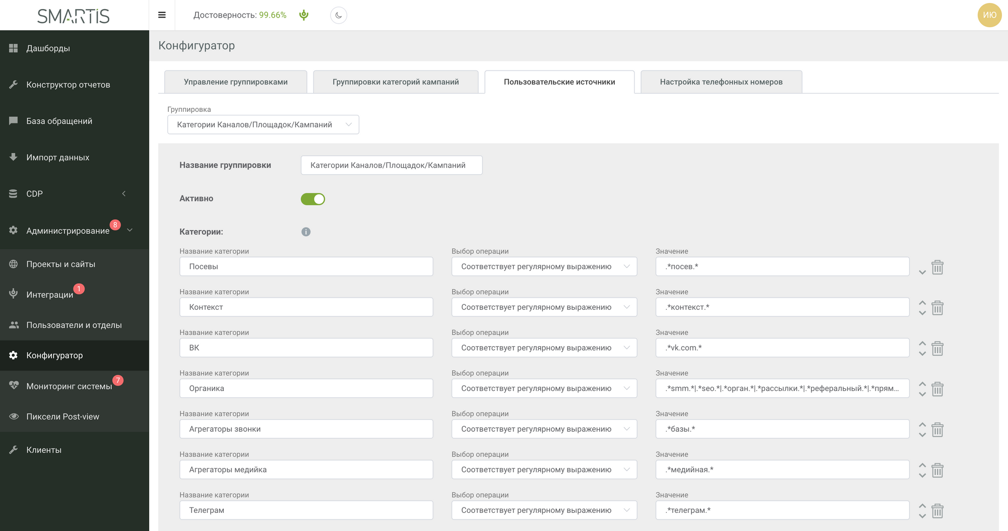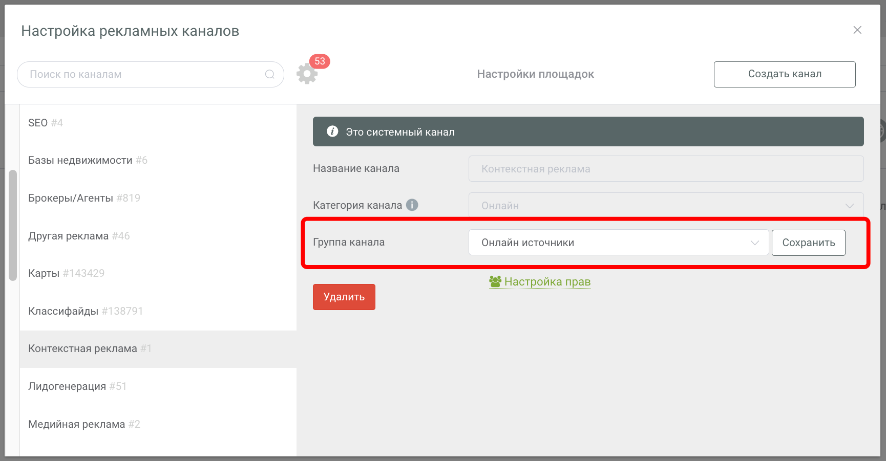 Для того, чтобы застройщикам было удобно работать с рекламными каналами, в Smartis можно сгруппировать похожие каналы.
