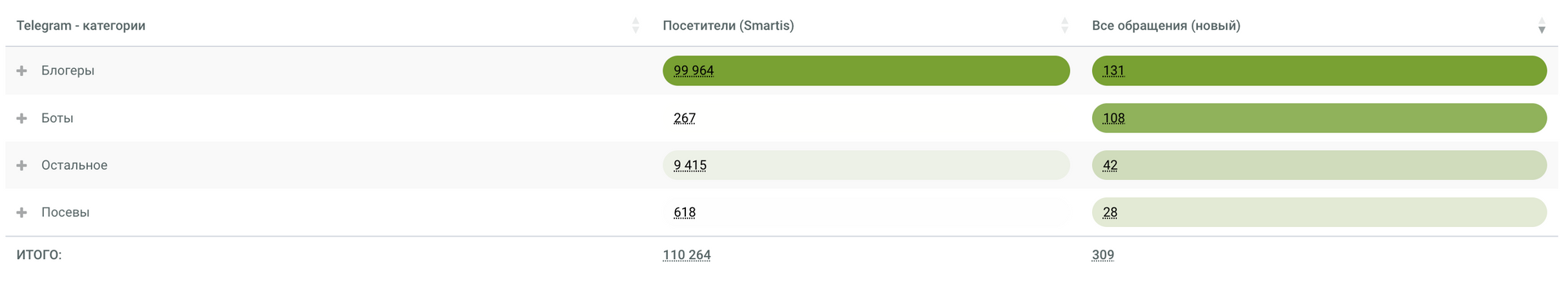Вот так, например, можно объединить многочисленные площадки и кампании Telegram в удобные категории: