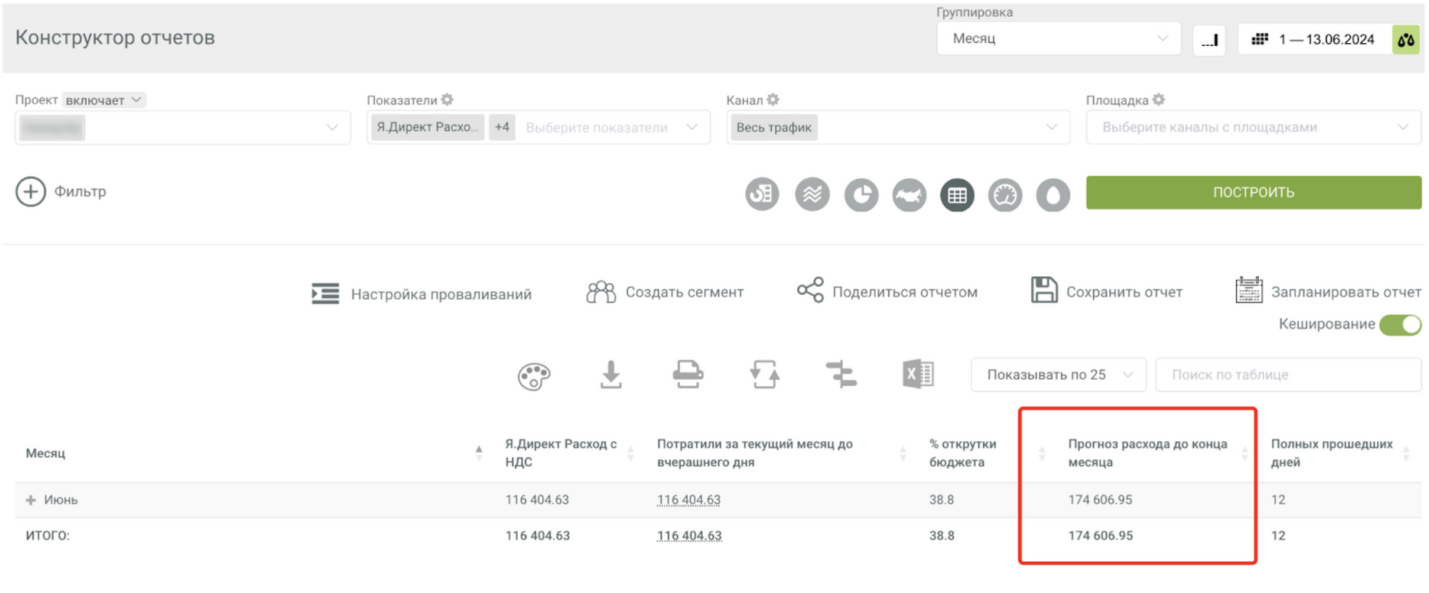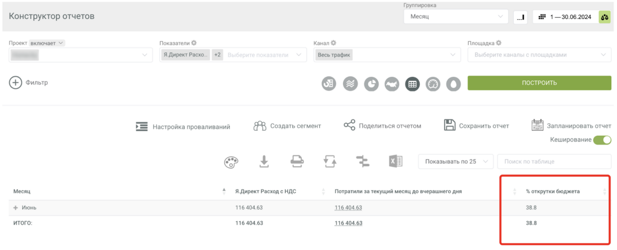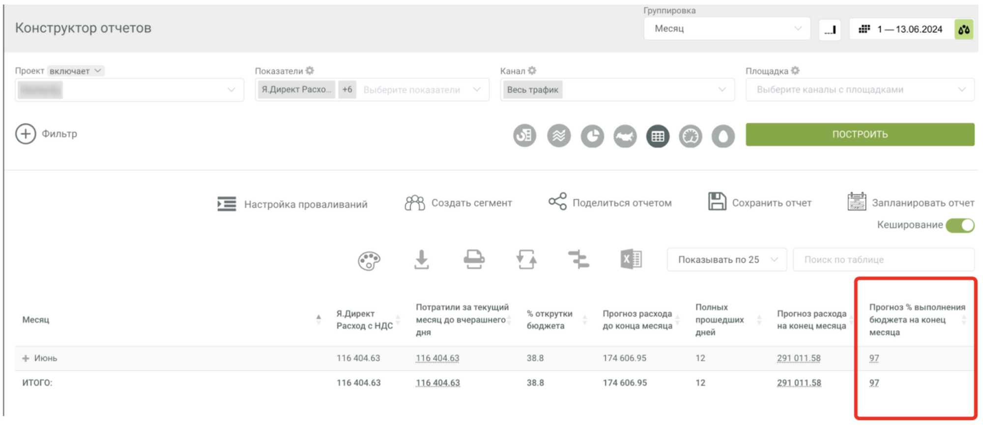 Еще один показатель – «Прогноз % выполнения бюджета».