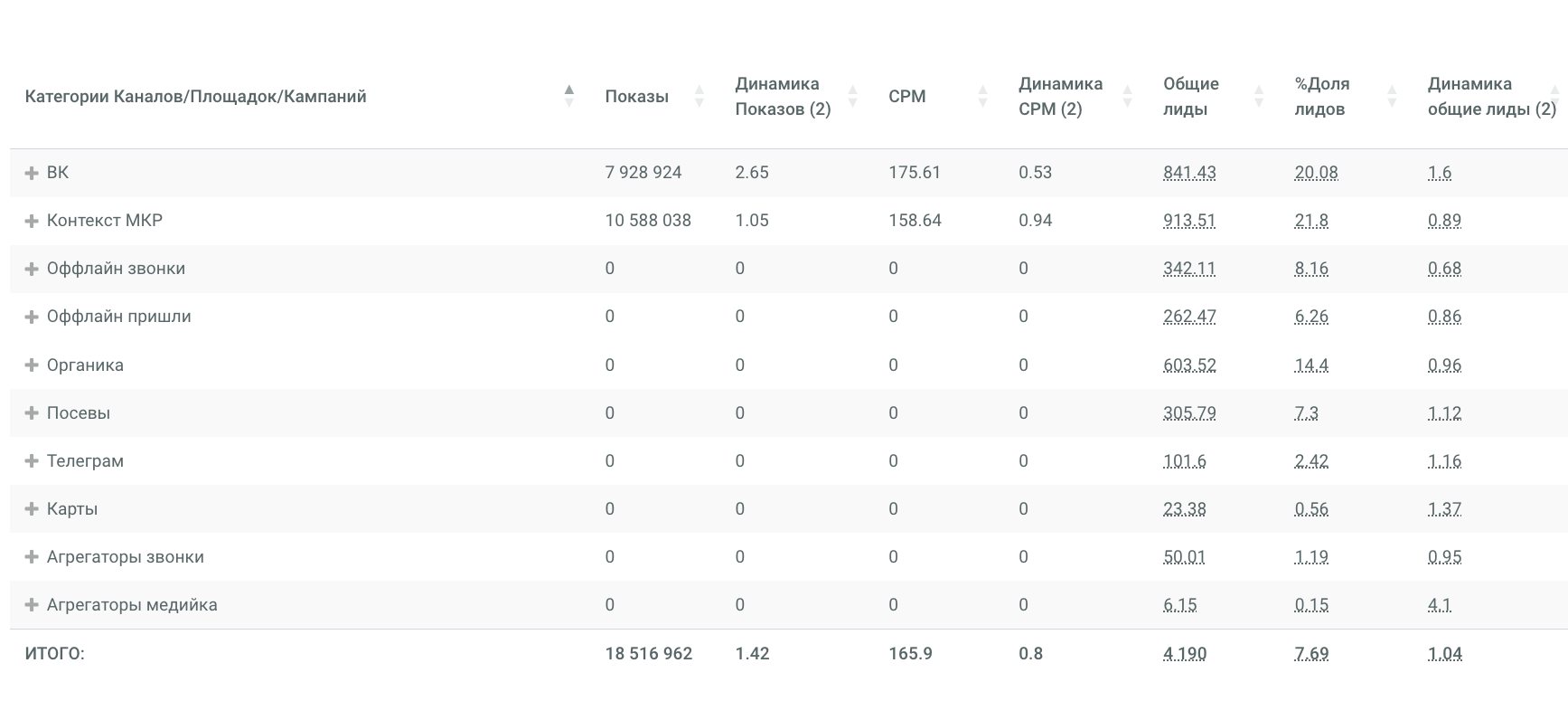 - Строить отчеты по звонкам, заявкам и чатам, в том числе по моделям атрибуции.