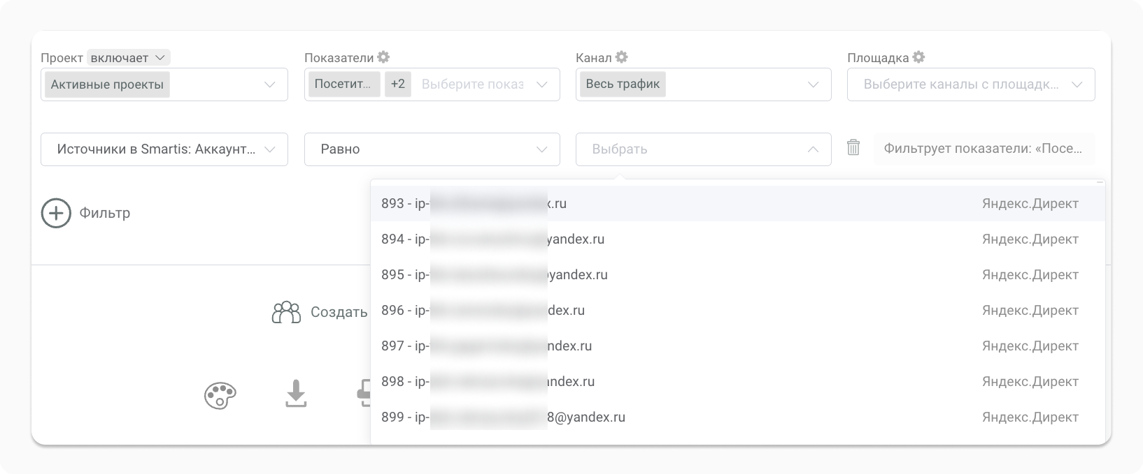 В Smartis также есть одноименный фильтр, чтобы можно было проще и быстрее проводить сверки данных и собирать статистику в разрезе рекламных аккаунтов.