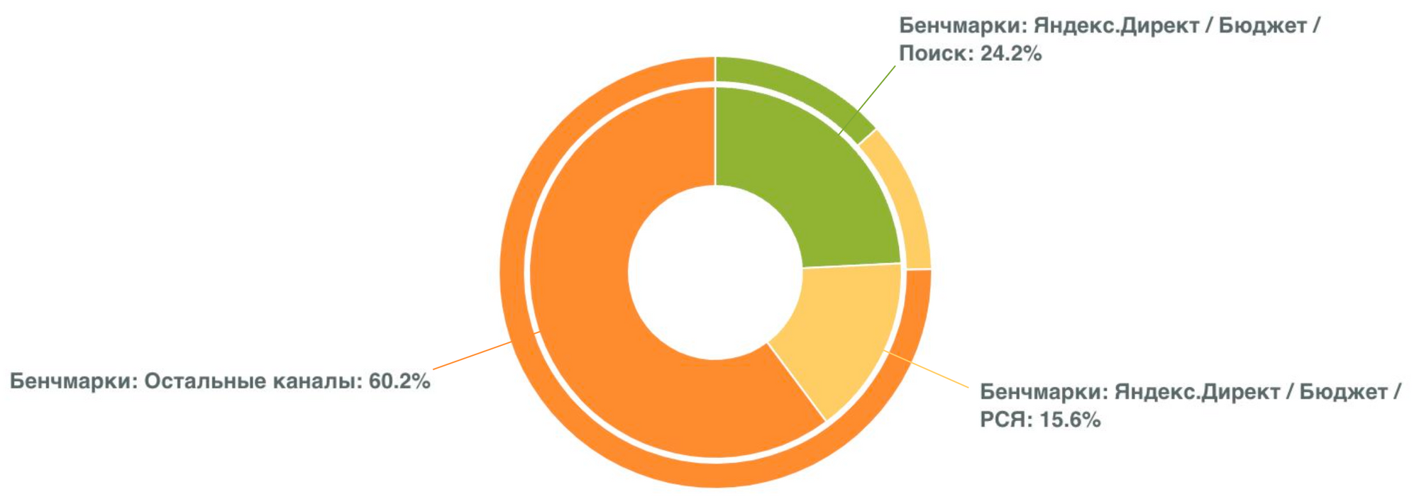 Доля бюджетов на Яндекс.Директ. 2021 vs 2024
