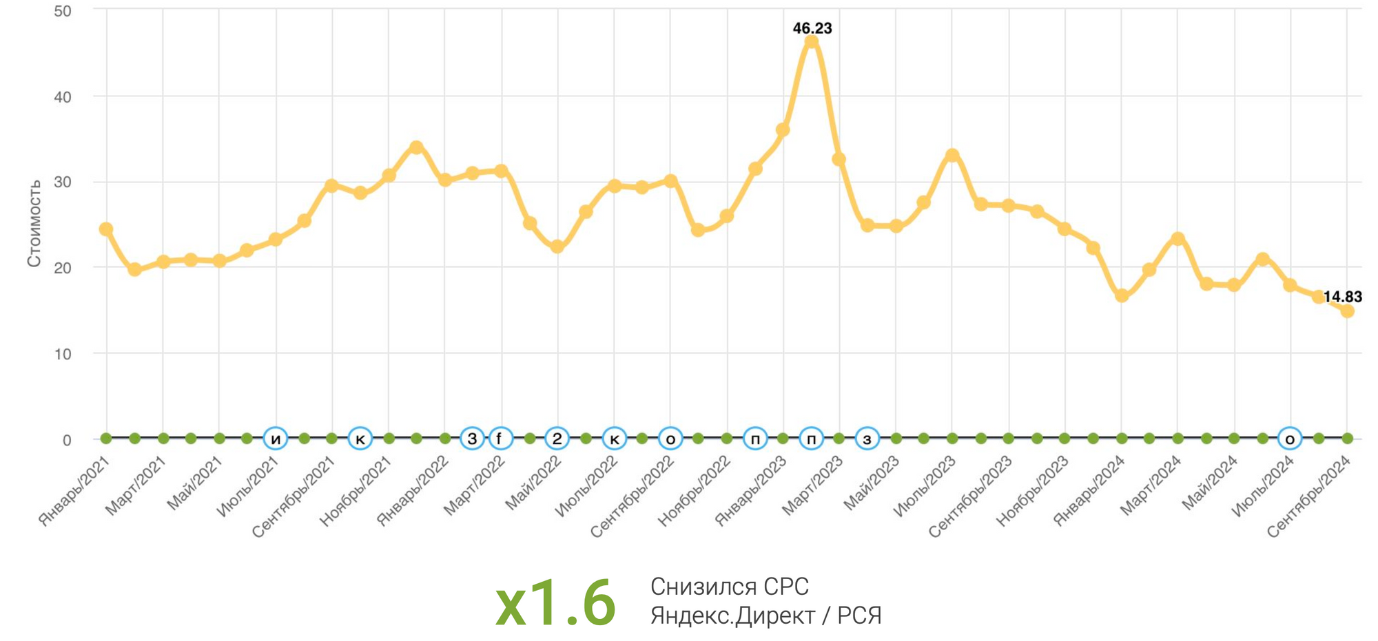 Динамика стоимости клика в Яндекс.Директ/РСЯ