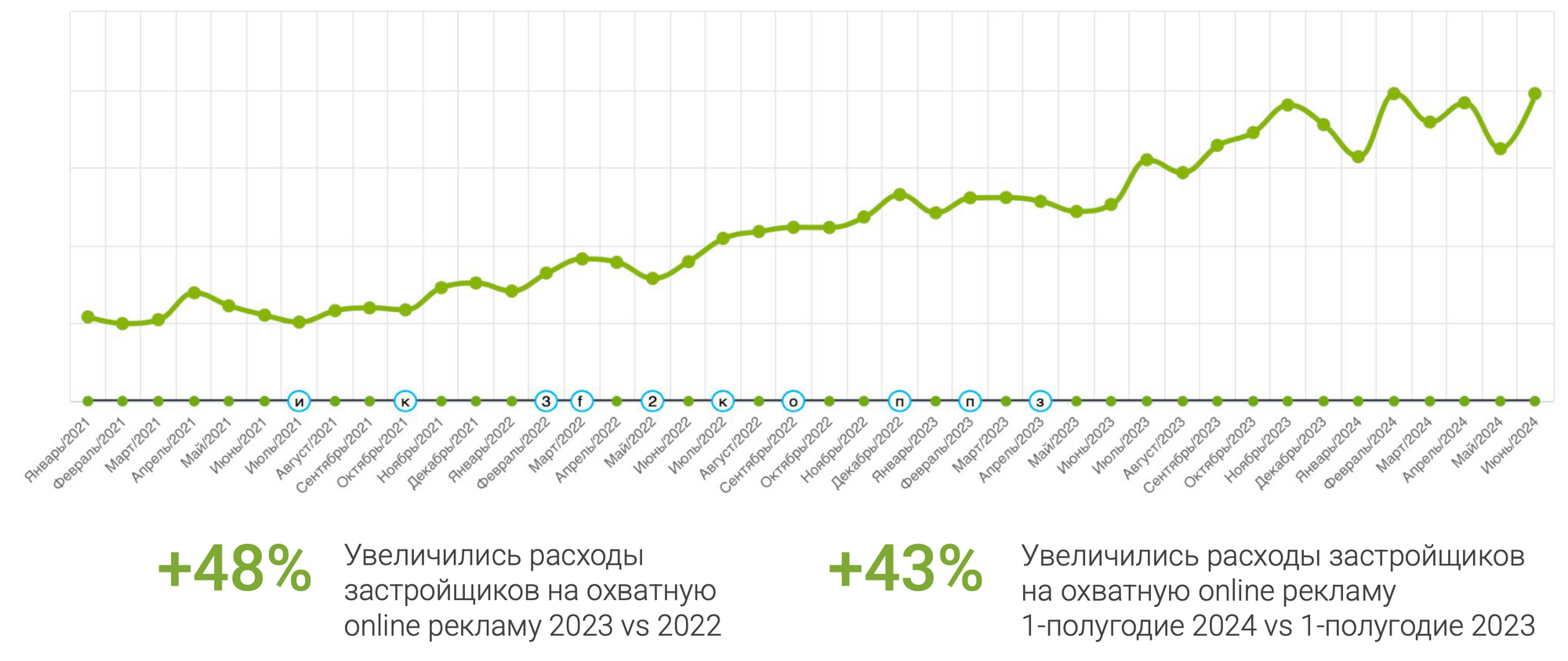 Застройщики, которые используют в работе data-driven подход, видят эффективность РСЯ на сквозных данных. Поэтому они решают перенаправлять бюджет на охватку и управлять ей на уровне контекстной рекламы.