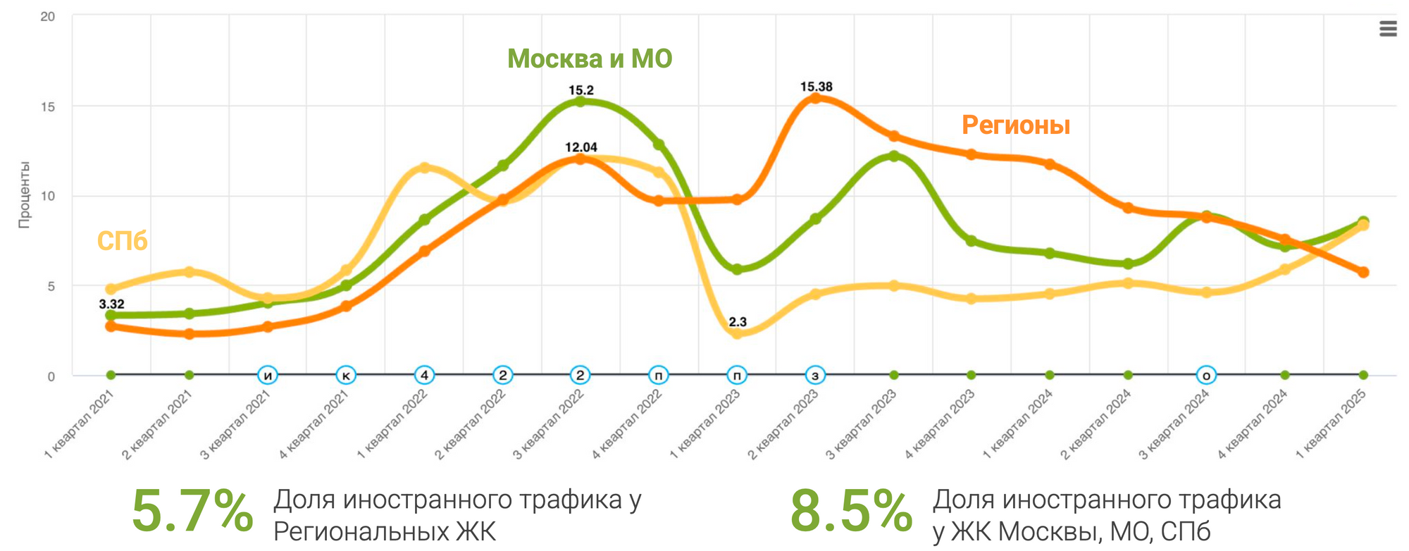 Раньше такой трафик составлял 3,2%, который застройщики в основном не замечали. Сейчас эта доля равна 8,5%. Это люди, которые покупают квартиры, поэтому девелоперам нужно обратить внимание на эту категорию.