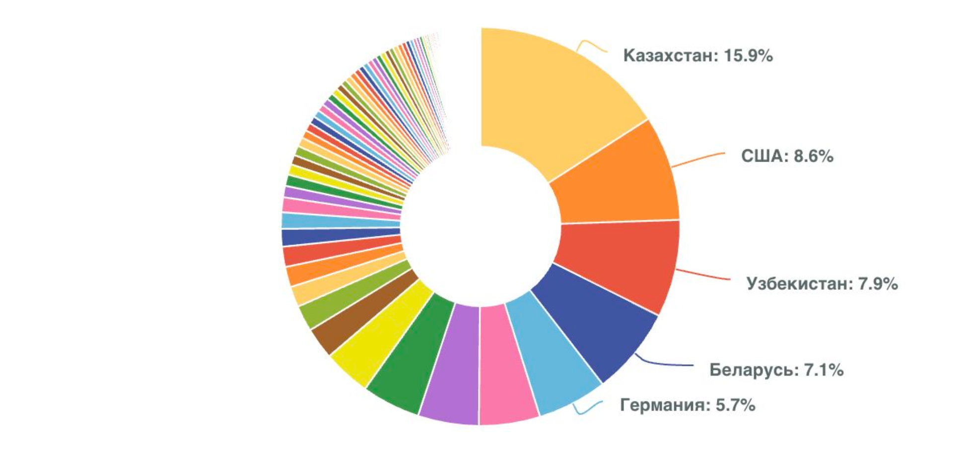 В 2022-2023 годах аудитория из других стран начала расти, в большей степени из Украины. С середины 2023 года эта доля начала снижаться, но осталась выше, чем была в самом начале.
