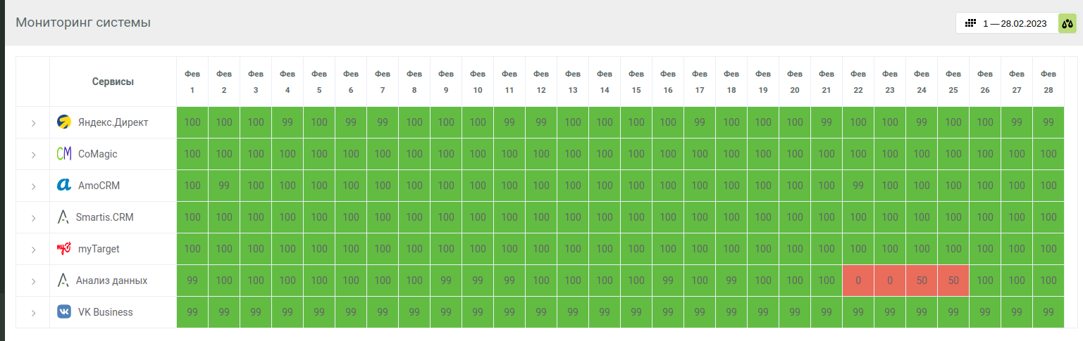 Если данные достоверны, то дни отмечены зеленым цветом. Если нет – красным или оранжевым. В этом случае вы можете обновить данные и показатели пересчитаются.