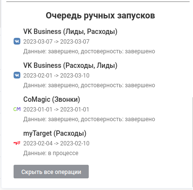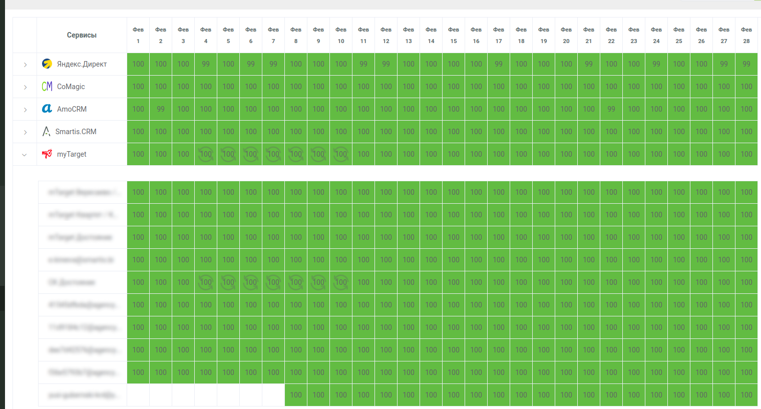 Информацию по достоверности данных можно вывести в таблице для каждой интеграции.