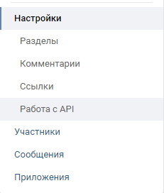 - 2 Затем в меню справа переходим в раздел «Работа с API»
