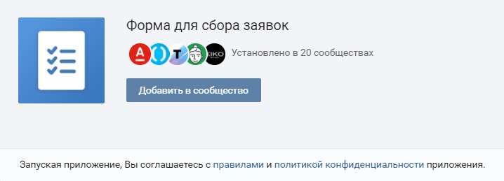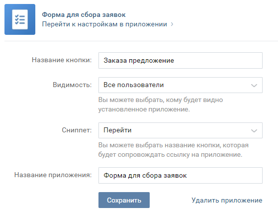 Вконтакте предосталвяет список всех созданных форм