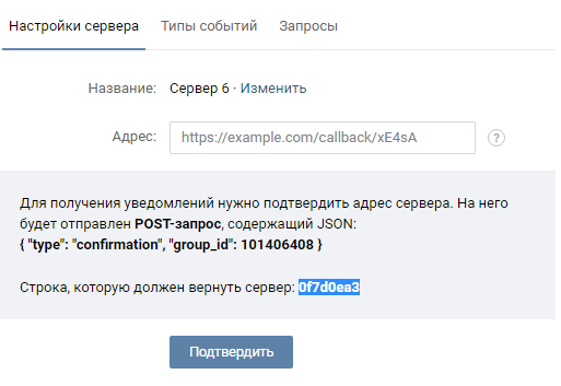 10 Идем снова в «Настройки сервера» в Вконтакте и вставляем скопированный адрес сервера в поле «Адрес»
