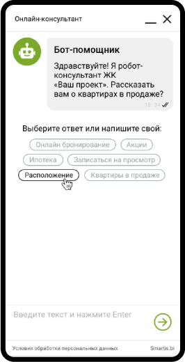 Пользователь общается по заранее выбранному алгоритму, нажимая на определенные фразы. Этот вариант разгружает первую линию поступающих обращений