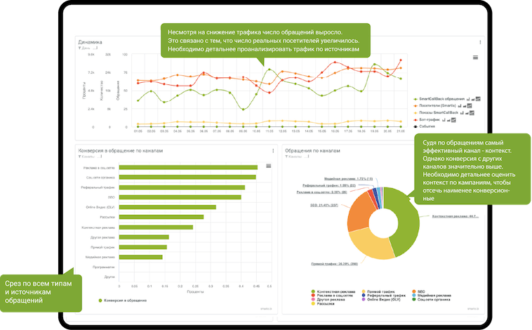 из разных рекламных источников — это удобно как для отдела маркетинга и колл-центра, так и рекламных агентств. У них есть доступ в единый канал, чтобы анализировать все обращения на уровне звонков.