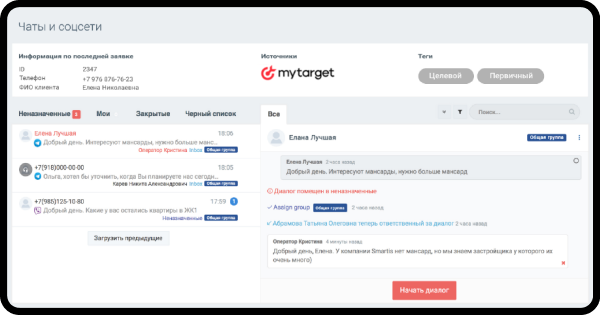 Обращения из всех других внешних систем, которые могут быть не оцифрованы в коллтрекинге и сквозной аналитике, – автоматизация форм на сайте (с прозвоном или без), лидов из соцсетей, заявки из марквиза и Яндекс. Турбо, сбор обращений с почт и последующее прокидывание всех этих заявок в общее окно обращений с указанием источника.